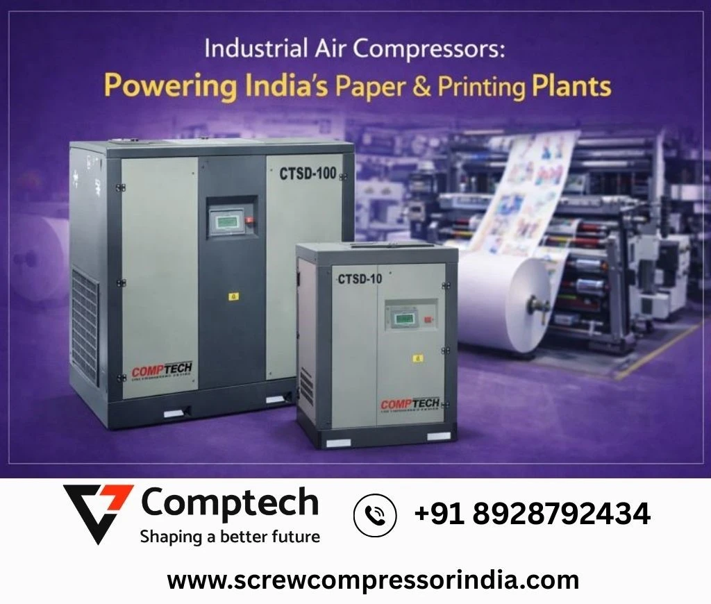 Industrial Air Compressors Powering India’s Paper & Printing Plants | Comptech Air Compressor in Jaipur Rajasthan